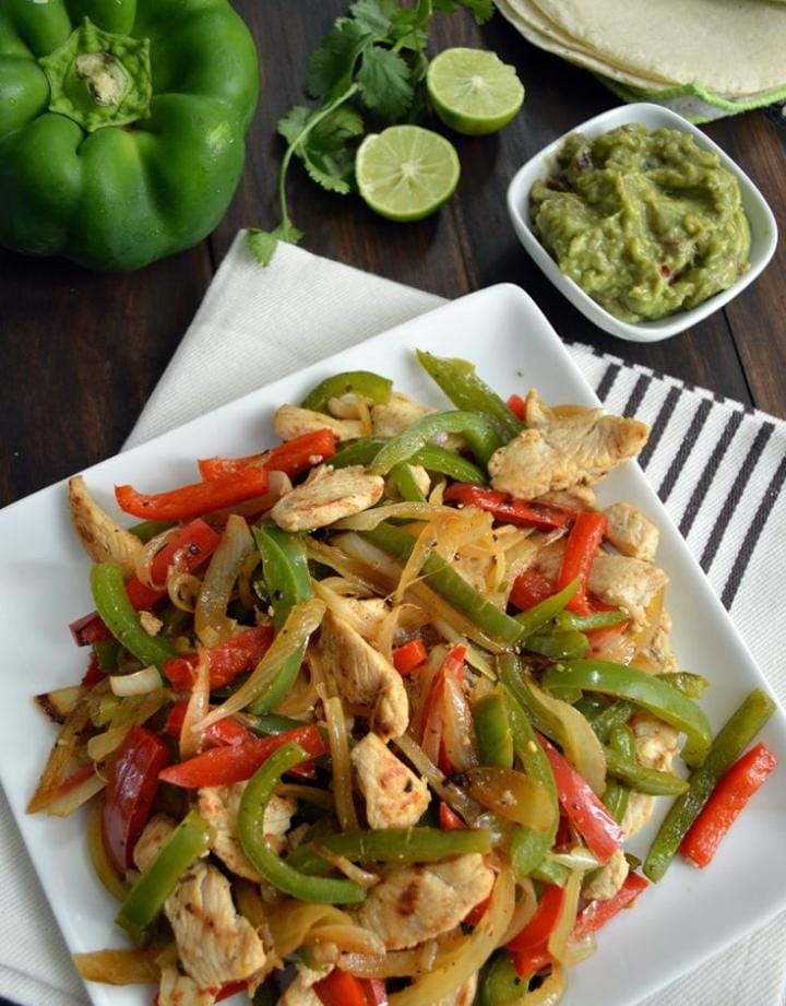 Pollo, vegetales de estación (morrón rojo, verde, berenjena, cebolla morada), pimienta , jengibre y arroz