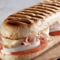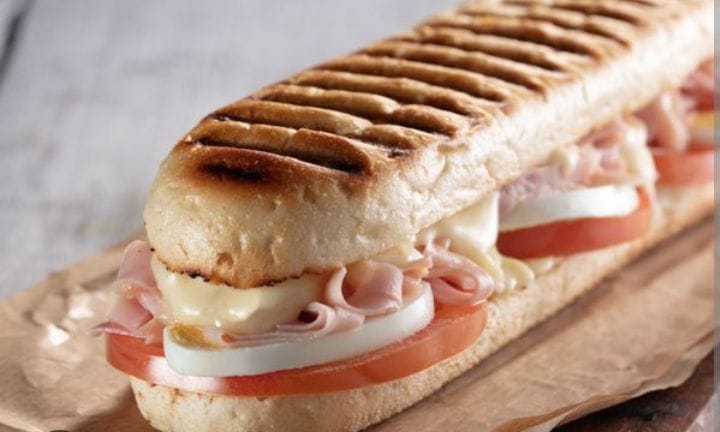 pan panini, jamon, queso, tomate y huevo a la plancha