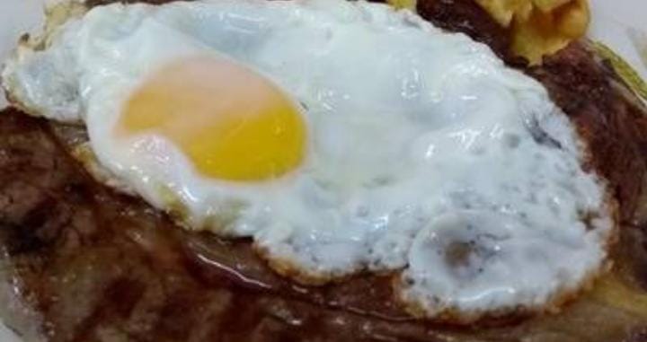 Bife de costilla c/ 1 huevo a la plancha y puré