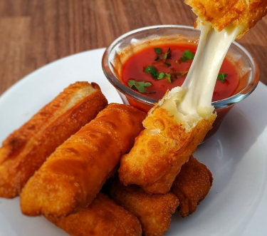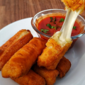 Bastones de muzzarela c/ dip de salsa y guarnicion