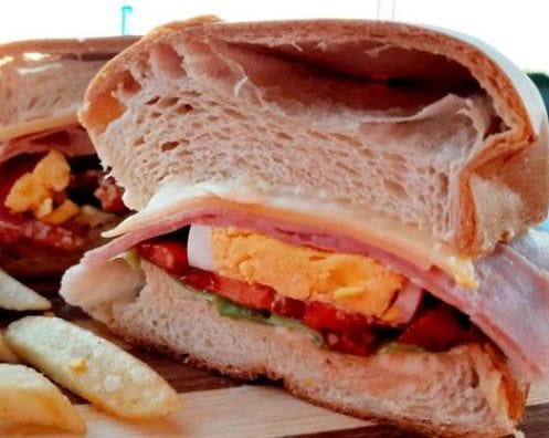 Jamon, queso, lechuga, tomate, huevo duro con guarnicion de papas fritas