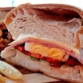 Pebete primavera, Jamon, queso, lechuga, tomate, huevo duro con guarnicion de papas fritas
