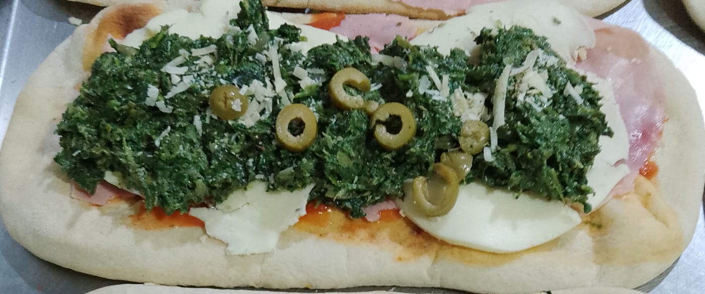 Pizza con muzza-Salsa blanca - Espinaca y Jamon