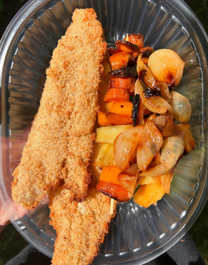 Milanesa de pescado al limón c/Verduras al horno