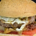 Burguer de Carne x2 completa c/Fritas Jamon-queso-tomate y huevo