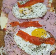 Milanesa con jamon, morron y huevo